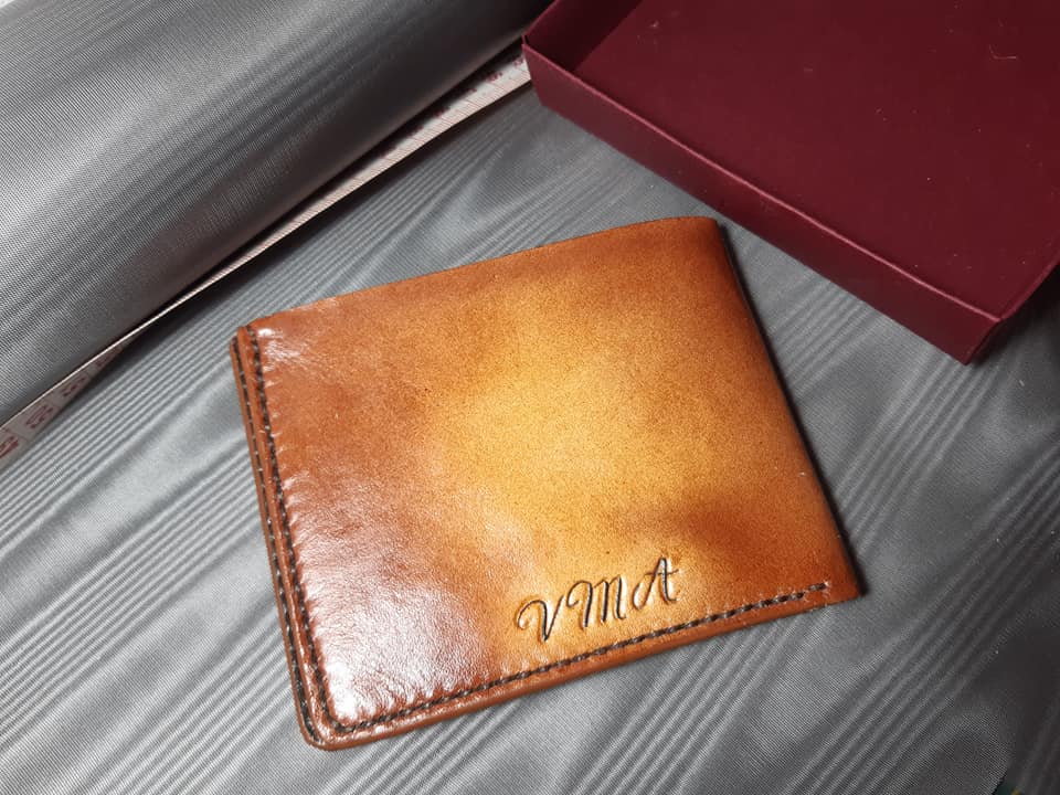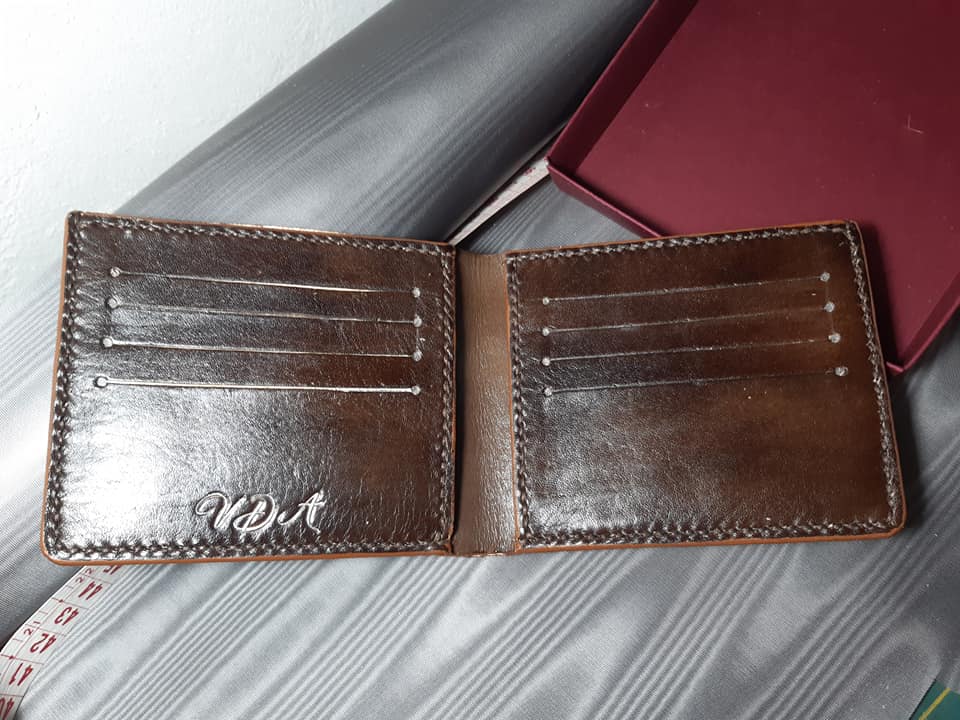 - Portofel bărbați, din piele naturală de vită, tăbăcită vegetal, culoare maro, sculptată